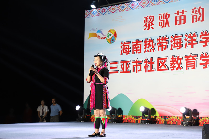 我校工会办公室副主任李爱金代表我校歌唱协会、舞蹈协会和“黎歌苗韵”三亚社区教育民歌培训班向到场领导嘉宾表示热烈的欢迎,对全体演职员工的辛勤付出表示衷心的感谢。她表示,自去年6月份我校歌唱协会、舞蹈协会成立以来,积极开展形式多样、内容丰富的教学活动,并将课堂教学展示内容转化为歌曲和舞蹈展示,充分展现学习成果。希望有更多的教职工参与歌唱协会、舞蹈协会、社区教育培训活动中来,共同促进社区教育高质量发展。